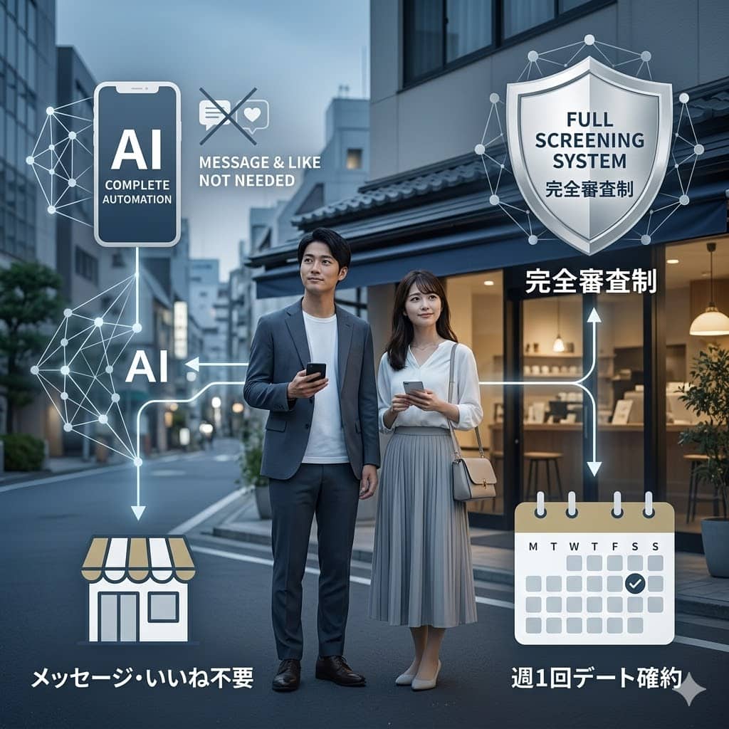 いいねや事前のメッセージは一切不要で、AIがあなたに代わって自動でデートをセッティングしてくれる画期的なシステムですが、利用にあたって最大の壁となるのが「入会審査」です。ここでは、多くの方が気になっているリアルな審査事情や通過率について、詳しく解説していきます。