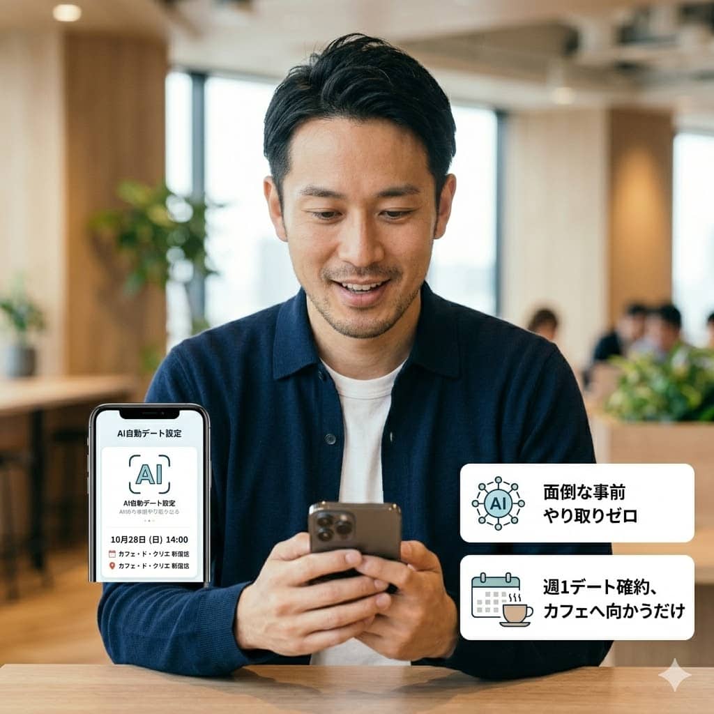 このアプリなら、AIが相手を選び、デートの日時と場所まで自動で確定させます。