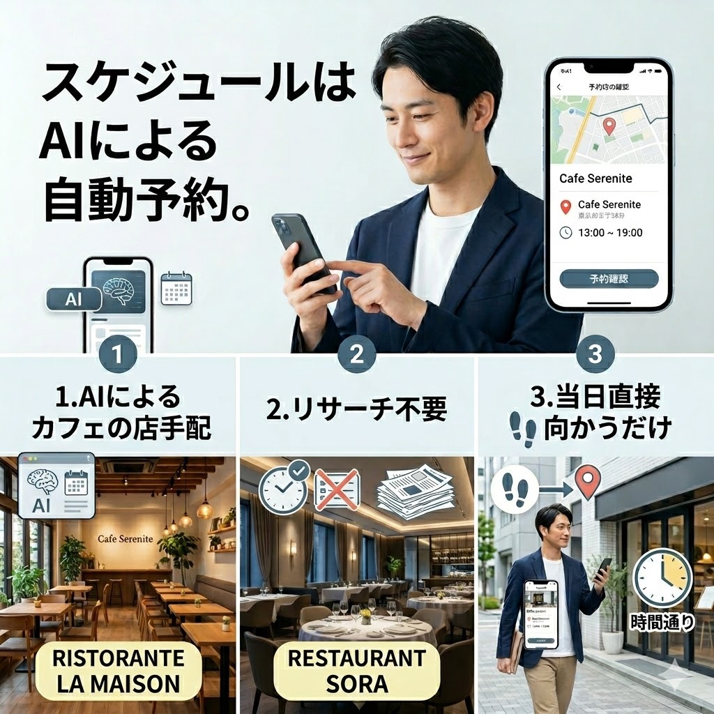 特に、お店選びが苦手な方や、仕事が忙しくて予約の電話を入れる暇がないビジネスパーソンにとって、デート環境が自動で整えられる利便性は圧倒的です。